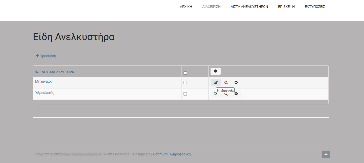 Καταχώρηση Συσκευών – Ανελκυστήρωνμε τα απαραίτητα στοιχεία (S/N, model, part number κτλ) και αντιστοίχιση στον πελάτη