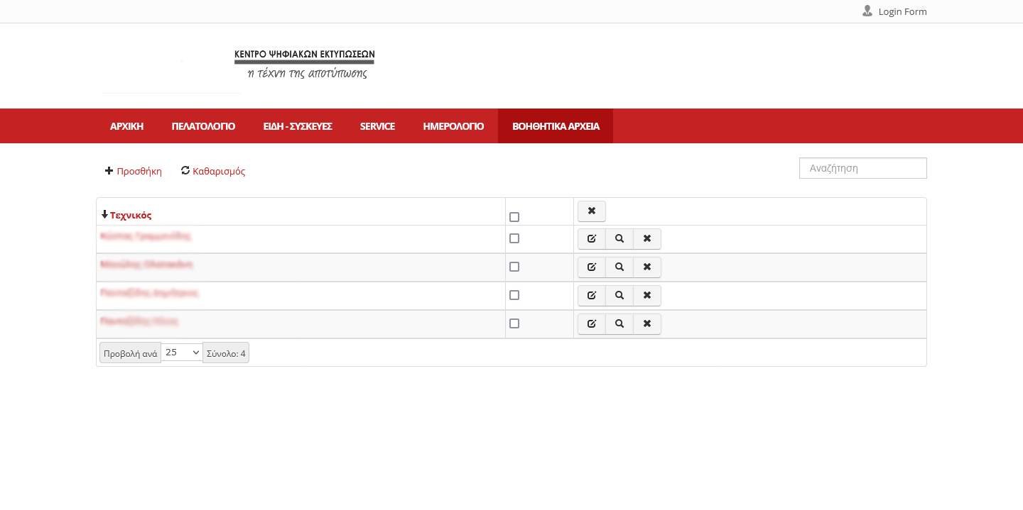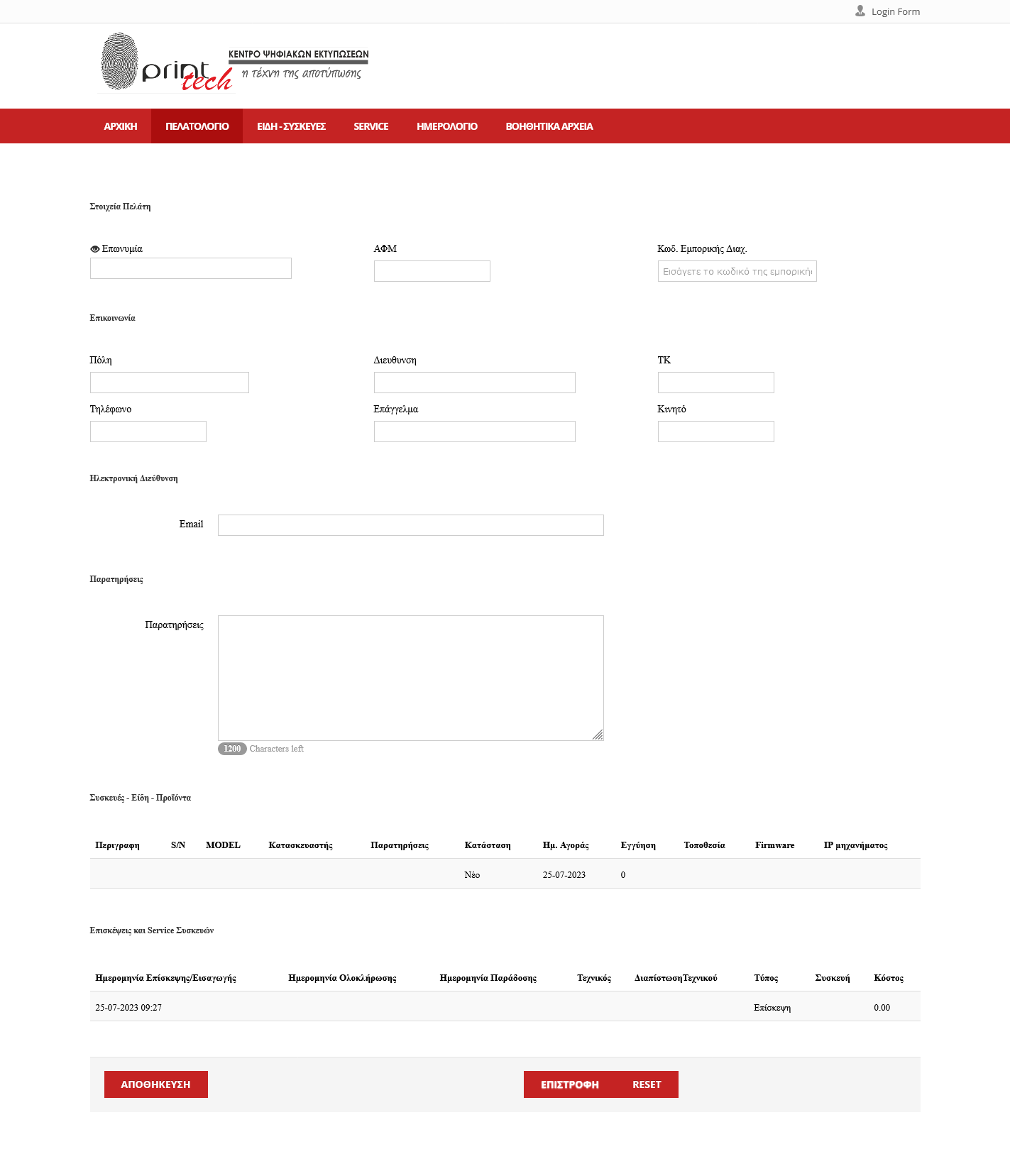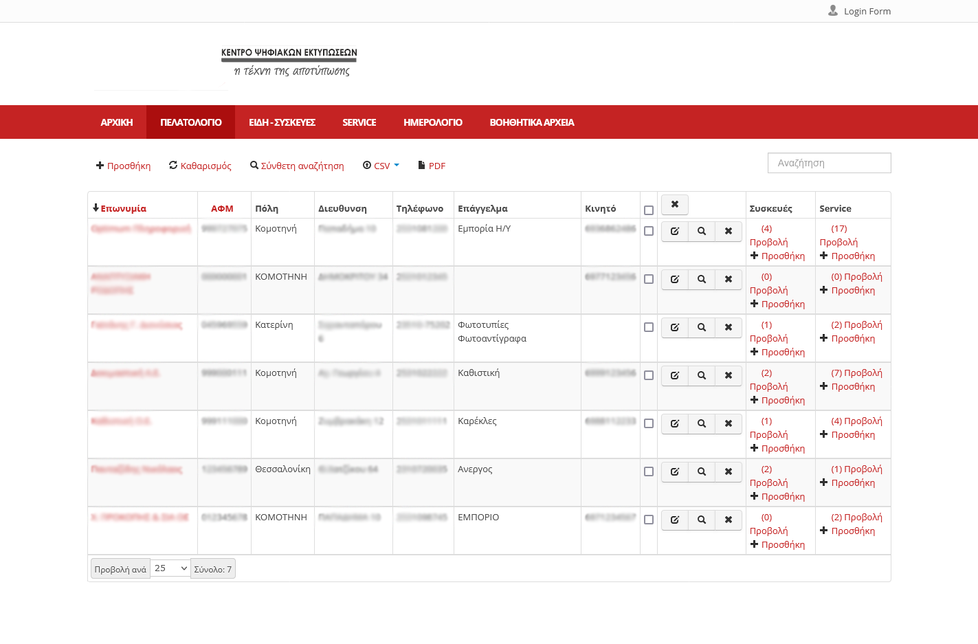 Πελατολόγιο με καταχώρηση στοιχείων και αντιστοίχιση με τις συσκευές τους